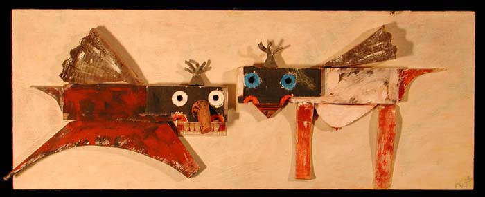 Kleiner Machtkampf, 30x70 Holz/Metall,Acryl 1999