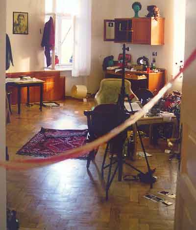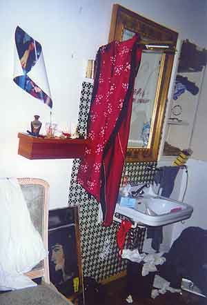 Spuren: Unordnung, eine Kreidelinie in Form eines Körpers...Dinge z.T. bereits