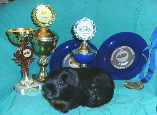 Carmen, Moppel v. Isarstrand, Mutter von Chloe & Cameron. Zweitkarriere nach Zuchtpause: Mit 3,5 Jahren erhält diese liebe, (bis dahin kontinuierlich SG-bewertete) Sau 2008 in Frankfurt und Maisach HV und Showplatzierungen mit V- Augen... Da schmeckt das Rentenheu gleich doppelt gut. ![]() nochmal Carmen, mit 3,5 Jahren 2.Bestes GH auf der Herbstschau 2008 des LV Bayern, Maisach. Sind stolz auf Dich! ![]() Gala, sie kam, sah & siegte. - in Wien!(Meerschweinchenfreunde Österreich-Schau 08) Wir lieben unsre Dicke! ![]() Garance.Erfolgreiches "Come back": nach Mutterpflichten (3 Würfen) , gewann unsre "Powersau" mit über 2 die UK BlackTan auf der Bundesdeutschen, wurde 3.Bestes GH auf der LV Hessen-Schau, Philippstein. Chapeau! Weitere Bilder folgen in Bälde. Cameron Scarlett`s Tara Scarlett`s Atlanta Praline Damarinda de Luxe Donata de Luxe Heimito |