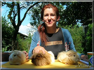 Mal wieder waren die Vilsquelle und der "Nagerhof" "schuld". Denn klar war mir schon, daß ich ins GH-Mekka , NRW, pilgern sollte- aber doch nicht mit Tieren...Nun, breitgeschlagen pack ich 5 Nasen (Senta, Scarlett`s Tara, Chloe, Scarlett`s Newton, Caesar) ein und düse mit Grip gen Nordwesten. Besser : permanentes Staustehn führt auch zum Ziel- grad rechtzeitig zum Einsetzen - -na, servus!Über 500 Tiere! Aber bitte: Wir sind ja nur just for fun hier! Am Freitag wertete ich dann mal 20 Liebhaber. Das machte Spaß, gab`s richtig was aufs Auge. Vorallem Tiere, die noch in Gießen bemängelt, endlich sauber präsentiert waren! Bravo. Neben kleinem Kulturschock in unserm "Hotel" hatten wir viel Spaß, ob beim Abendessen, mit netten Züchterkollegenn und Petra Grip beim Schreiben & Zugucken, ich mit Philipp u. Dagmar beim Caffeklatsch bei RMZ am Walde incl. Besichtigung einer tollen Langhaarzucht. Danke Anja! Sonst sammelte ich mal Erfahrungen im Tierverkauf