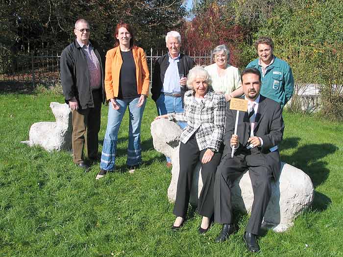 Übergabe von Petra Scherzers 3-teiliger Betonskulptur "Tiere die friedlich grasen und zum Sich-Niederlassen einladen". Am 13. Oktober nahm der 1. Bürgermeister die von einer Bad Wörishofener Familie gestiftete Arbeit entgegen. Die grasende Meerschweinchenfamilie hat ihren Platz jetzt auf der Steinle-Wiese am oberen Mühlbach gefunden.